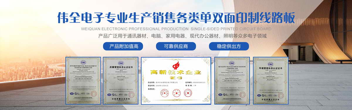 泉州永春伟全电子股份有限公司是一家合资企业。创办于2011年,专业生产各类单面印制线路板,是福建省专业生产印制线路板的主要厂家,公司坐落在泉州市永春县桃城镇留安开发区添福工业园,占地面积达10多亩,交通方便。公司现有员工80多人,总投资3000多万元人民币,年生产能力逾20万平方米。